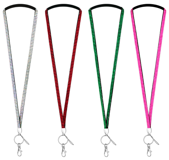 We are pleased to offer these stunning lanyards with bling at the lowest price to our dear customers. This lanyard is made of sparkling rhinestone plastic gems and is extremely comfortable to wear. This sparkly lanyard is a superb way to stand out and make a statement at work or at an event. We have a variety of colors available that you can pick from the international color pantone chart. A great feature with this rhinestone ID lanyard is that it comes with two types of clips, a lobster claw or split key ring to hold the identification card and a string loop clip to attach USB, cell phone, or any other electronic device. The rhinestone gems give a crystal gem effect that is far more impressive than a standard plain lanyard. This lanyard has been very popular with our customers who run award ceremonies or small charity events.